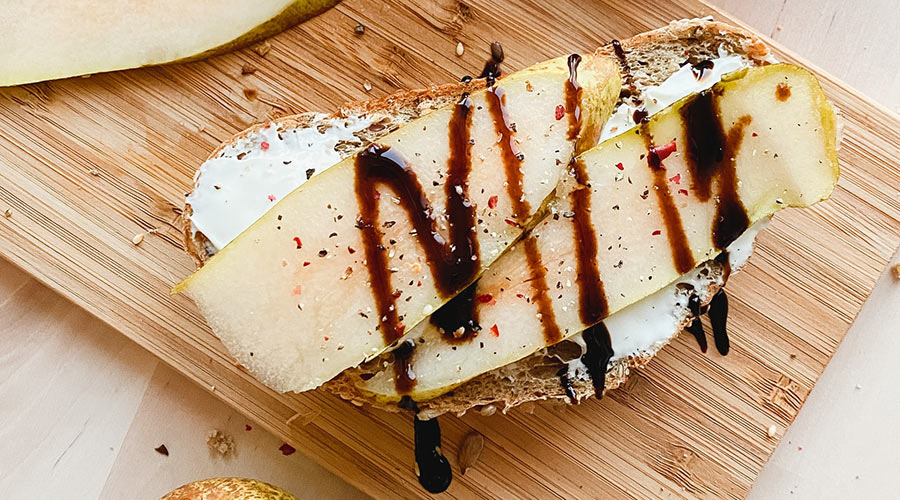 Schinkenbrot mit Birne und Ziegenfrischkäse
